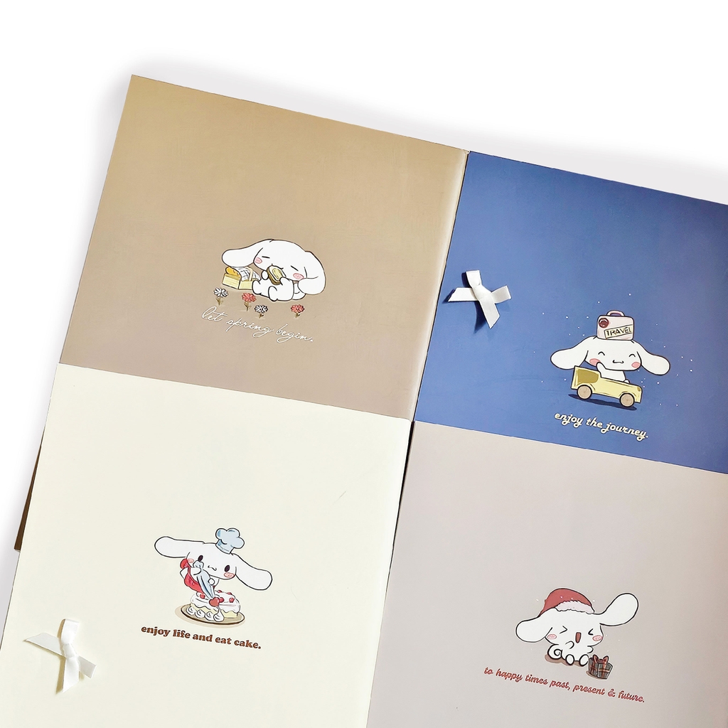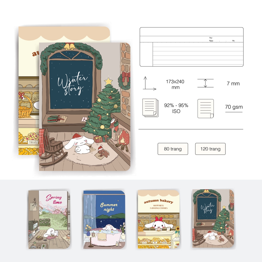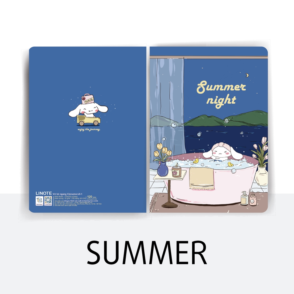 BST "FOUR SEASONS" mới nhất của nhà LINOTE có 4 mẫu bìa vở trendy, mang phong cách hoạt hình dễ thương, đáng yêu Cinamoroll và tone màu Pastel nhẹ nhàng, tươi sáng. Gồm 02 dòng vở tiện dụng nhất: 80 trang và 120 trang.